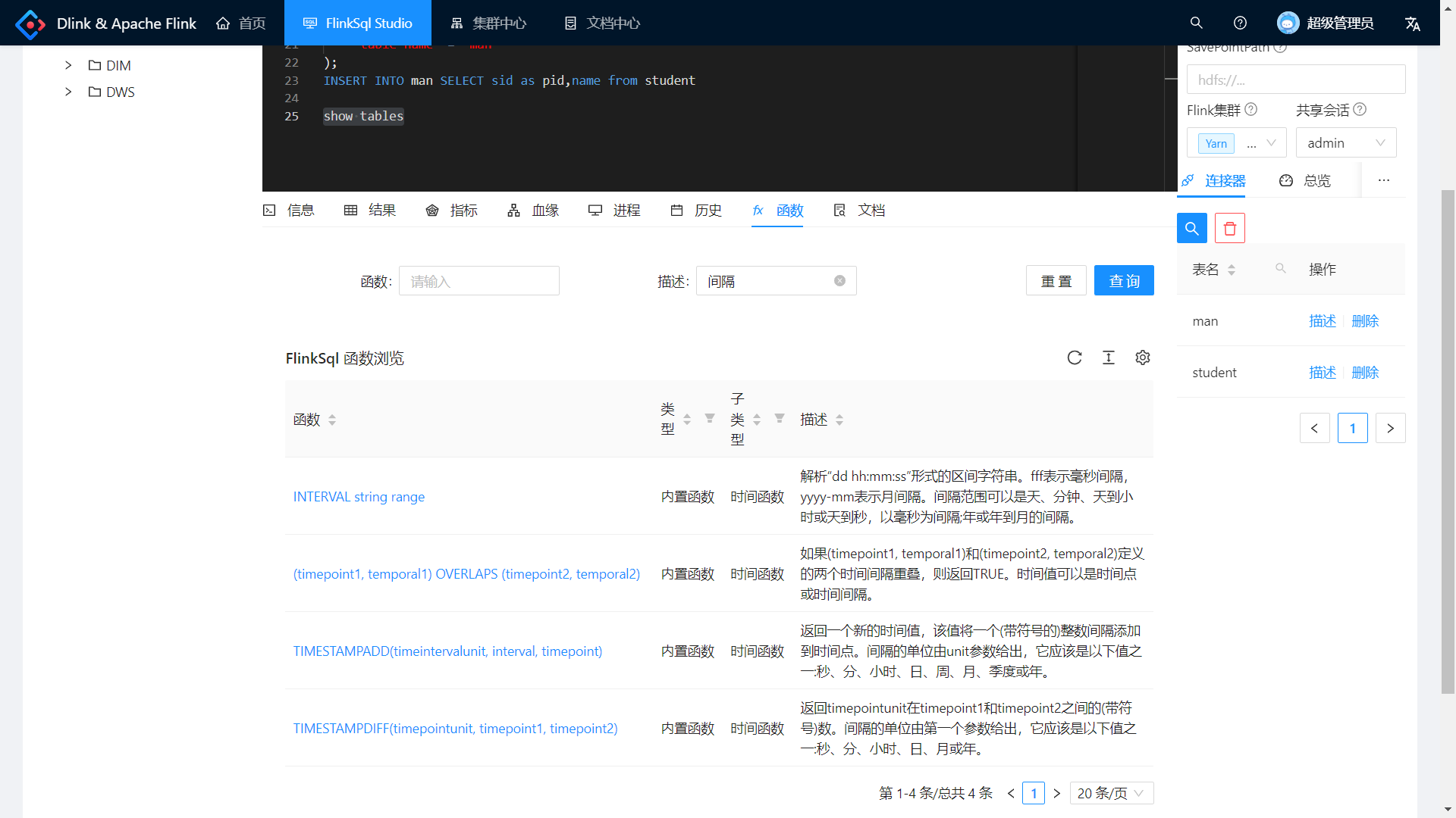 将 Flink 集群上已扩展好的 Connector 和 UDF 直接放入 Dlink 的 lib 下,然后重启即可。